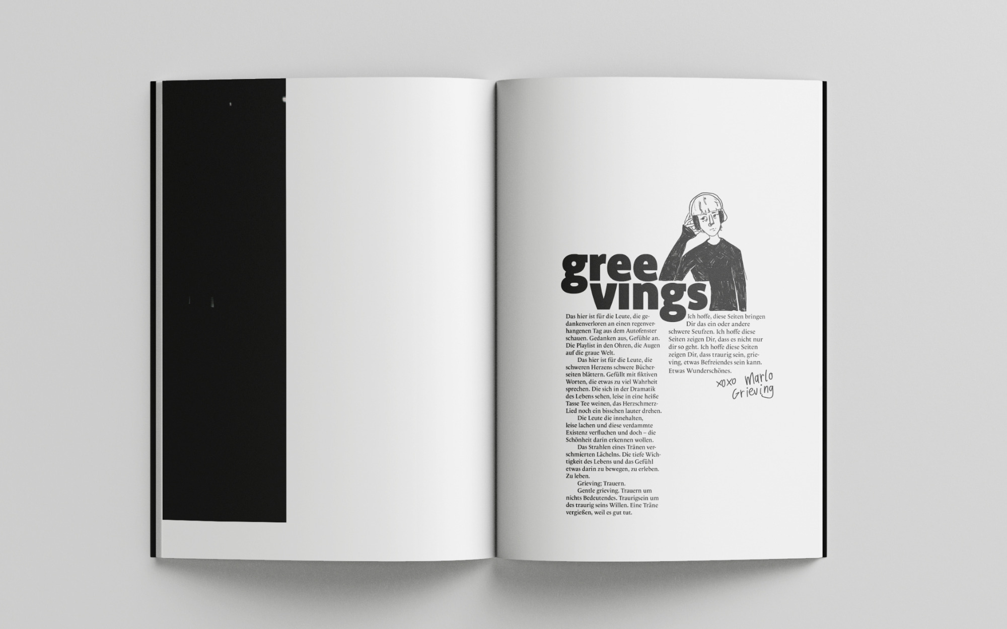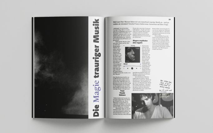 „Gentle grieving“ is a pun with my last name but also the examination of the beauty within sadness. The magazine tackles different media forms and how topics of sadness can be experienced as positive or even desirable. Media consumers are often looking for happiness and entertainment. As research shows, more often, they are on the search for something that has an impact, that may move them, may make them think differently about something, feel something, learn something new. More important than fun, when consuming any type of media, is meaning.